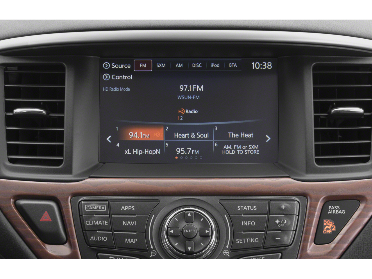 - Radio: AM/FM/CD Audio System w/NissanConnect -inc: 8" color display w/multi-touch control, HD Radio, SiriusXM satellite radio, USB connection ports (2 type A) for iPod interface and other compatible devices, SiriusXM Travel Link (weather, fuel prices, movie listings, stock info and sports), Bluetooth hands-free phone system and streaming audio via Bluetooth